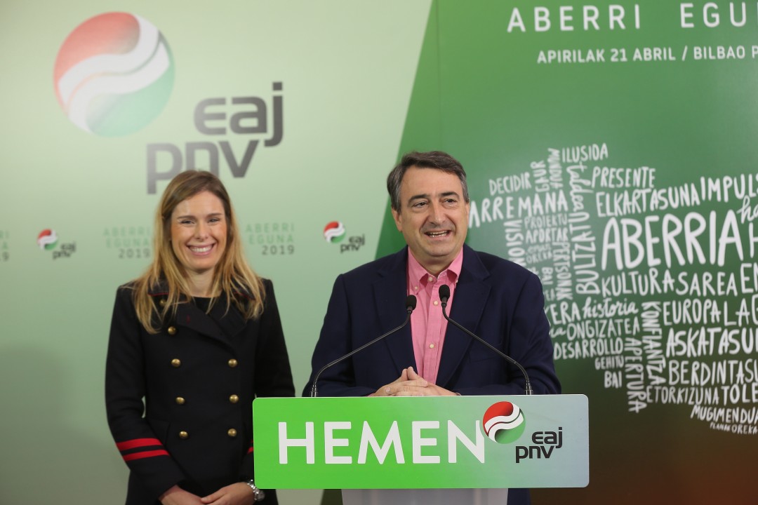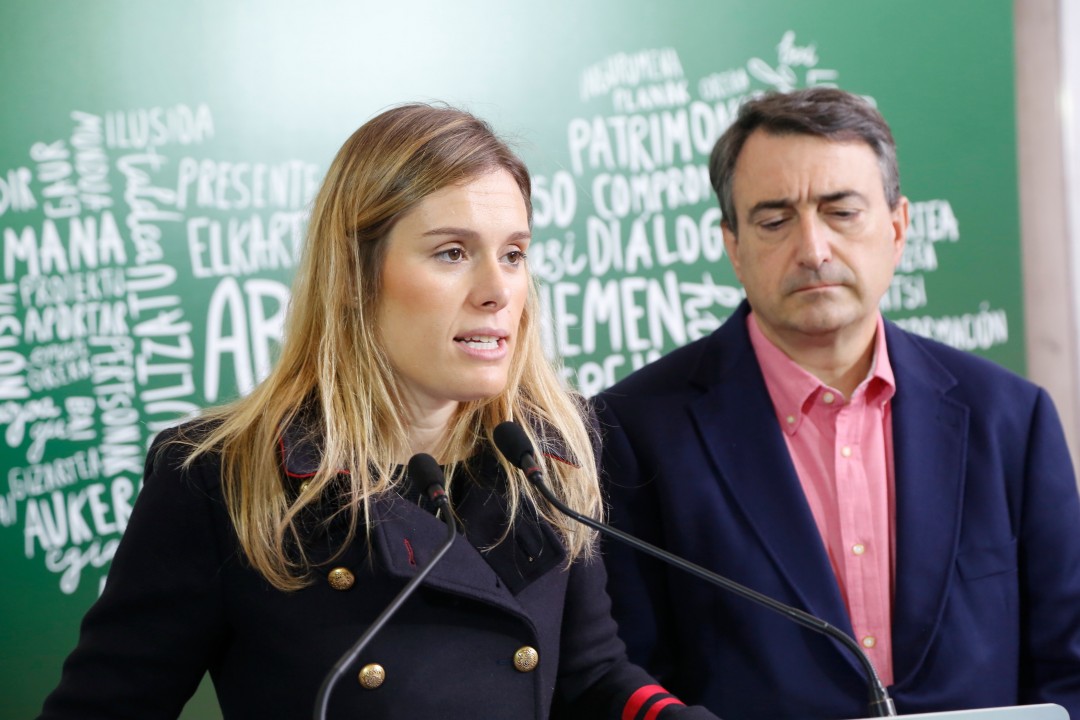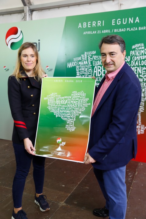 Aitor Esteban, Mireia Zarate. Aberri Egunaren kartelaren aurkezpena. Bilbao